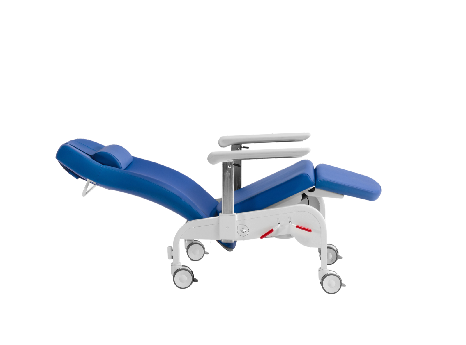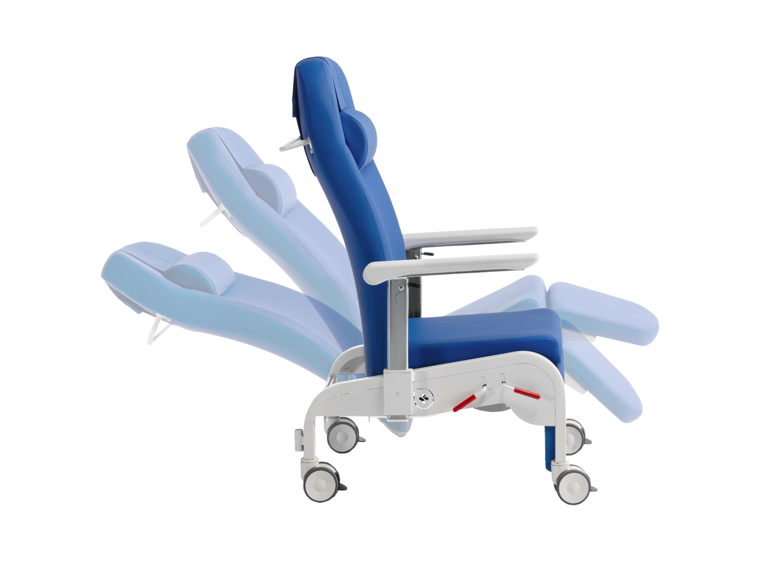 The legrest is folding to zero position and scalable under the seat, which allows and does not hinder access to the armchair