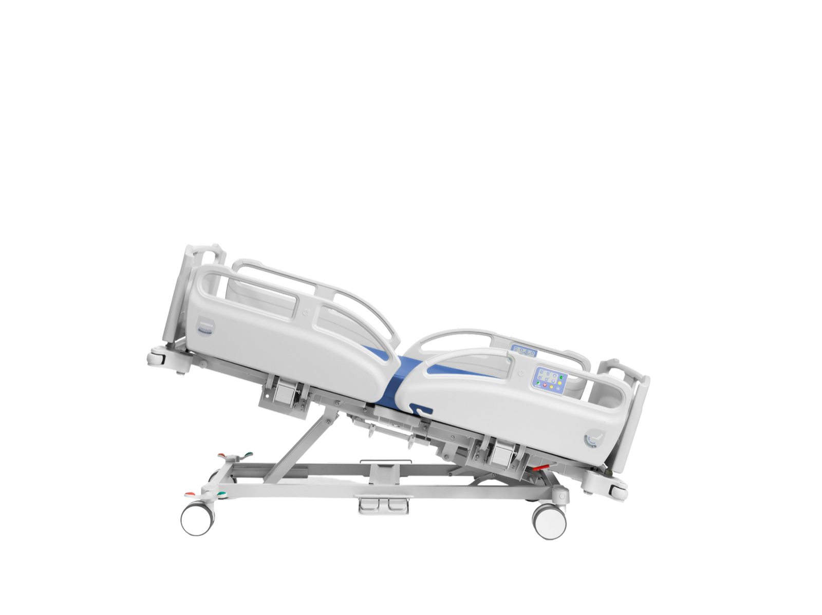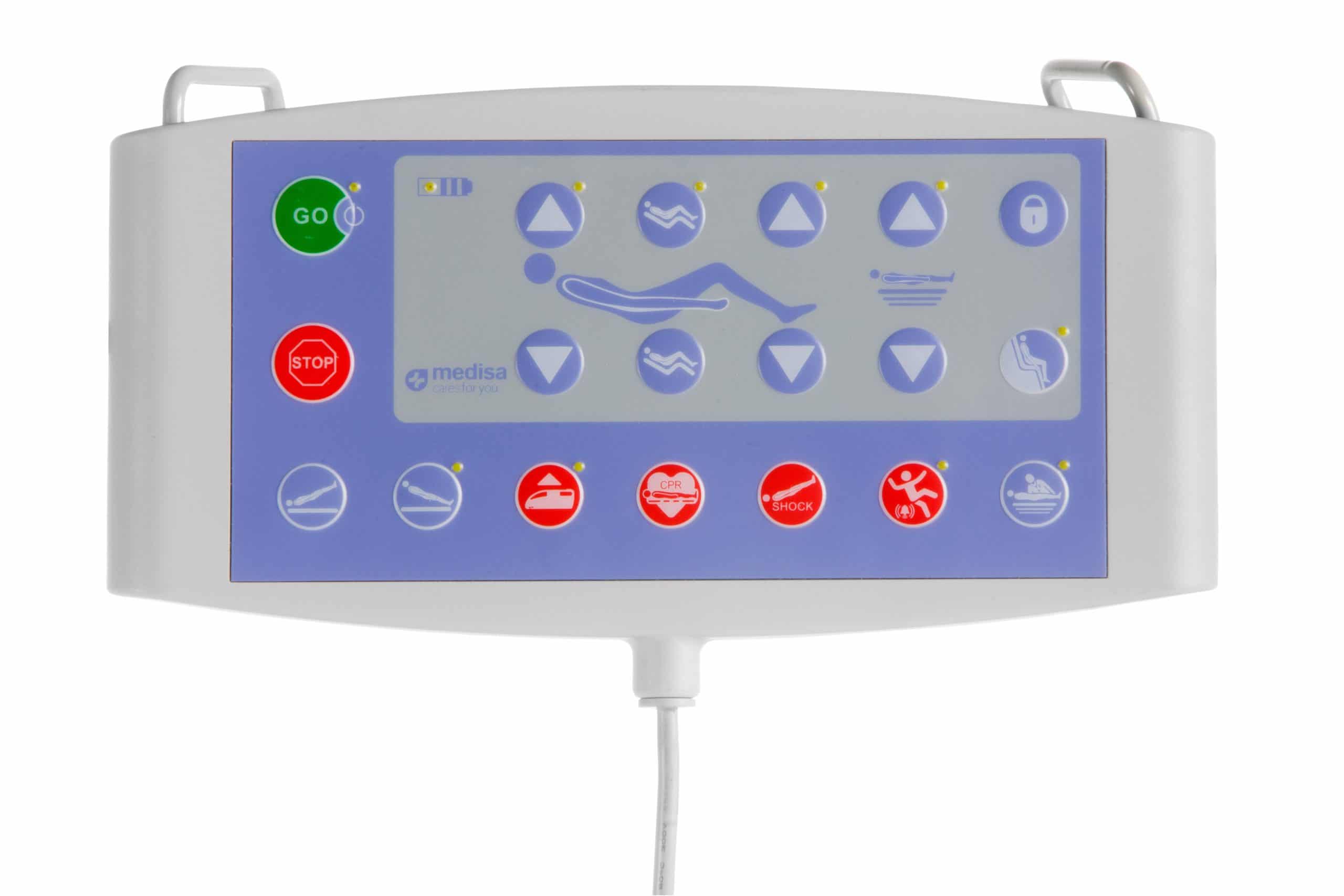 Luz led de advertencia: dos puntos de luz de led de color azul integrado en barandilla, y sensores de advertencia acústicos y visuales cuando se realizan las posiciones de seguridad y salida de paciente